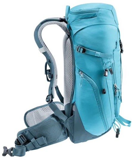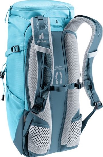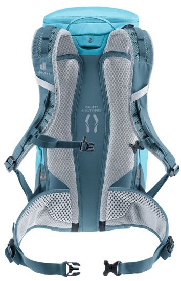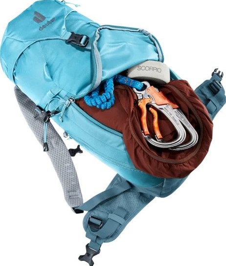The reduced contact surface and large ventilation channels of the deuter Airstripes back system combined with perforated shoulder straps and hip fins ensure maximum airflow and even weight distribution – for a snug, secure fit over any terrain. A flat-format lid allows space for the head to move, even when wearing a helmet. Loops on the shoulder straps keep via ferrata set carabiners close at hand. And thanks to a large front zipper opening and side pockets, equipment is always easy to access.