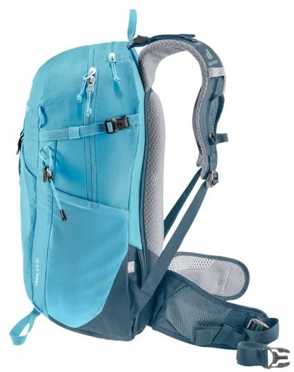 The reduced contact surface and large ventilation channels of the deuter Airstripes back system combined with perforated shoulder straps and hip fins ensure maximum airflow and even weight distribution - for a snug, secure fit over any terrain. Loops on the shoulder straps keep via ferrata set carabiners close at hand. And thanks to a wide zip around opening, elasticated stash pocket on the front and side pockets, equipment is always easy to access.
