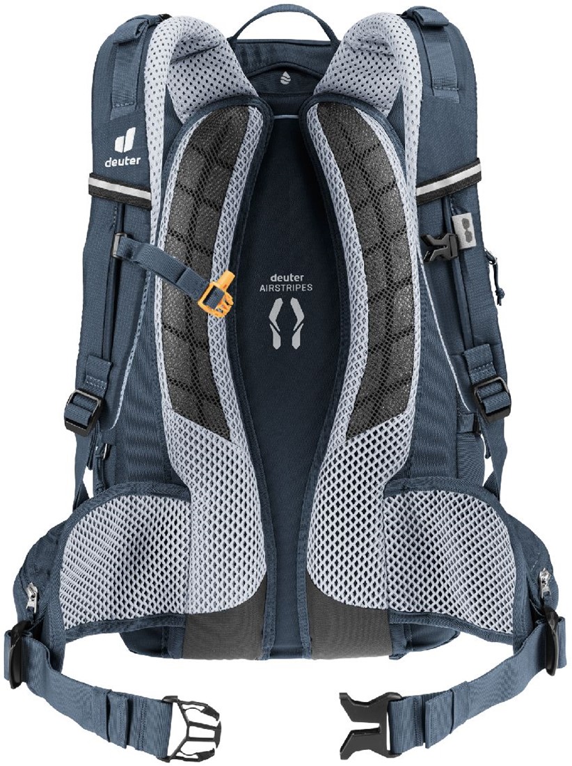 This spacious pack is ideal for challenging multi-day alpine traverses by mountain bike. The clever layout, with tool and pump compartments, for instance, plus a handy front stash pocket which can also accommodate a helmet, plus a subdivided main compartment give this pack easy handling and clever organization. The deuter Airstripes back system allows air to flow across the back for good ventilation while creating a snug, solid fit for tackling challenging trail sections without load wobble.