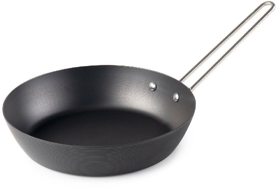 Carbon steel frypan with ultra-hard heat treatment for improved seasoning and durability. Features a flip-over SureLock handle, for compact spaces and easy storage. The 8" and 10" Carbon Steel models feature GSI's SureLock folding handle, which provides a sturdy, stable grip over the stove top or grill and conveniently folds into the pan for storage and transport.